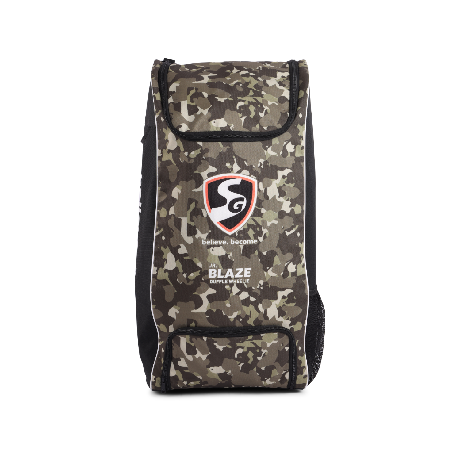 The SG JUNIOR BLAZE DUFFLE WHEELIE Kit Bag is the ultimate solution for young cricketers who need a reliable and convenient way to carry all their gear. Designed as an ideal wheelie duffle bag, it features water-resistant, highly durable premium fabric to withstand tough conditions. The bag includes SG customized durable zips and runners for enhanced reliability, along with a bat-sized outside storage sleeve and a separate shoe pocket for organized storage. The easy top-access main compartment ensures hassle-free packing, while two medium wheels provide better traction and control for smooth movement. Comfort is prioritized with 10 mm mesh padded shoulder straps for airflow and cushioning, and a fabricated grip handle supported with mesh for better grip and comfort. Special bartack stitches add extra strength and durability, and an additional mesh pocket is perfect for storing a water bottle or accessories. This bag is a must-have for junior players looking for functionality and durability.